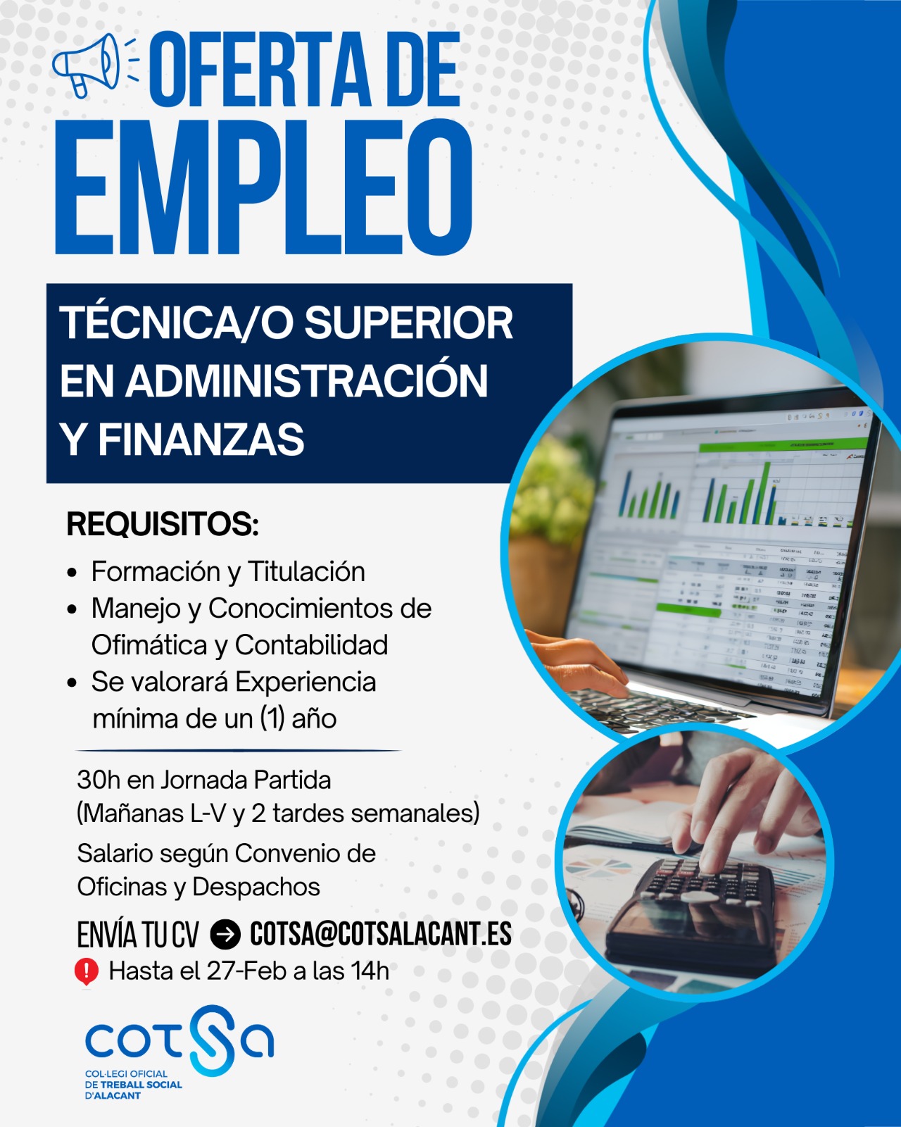 Nos encontramos en proceso de selección para incorporar un/a profesional a COTSA, por lo que solicitamos tu colaboración en la difusión de la presente convocatoria.