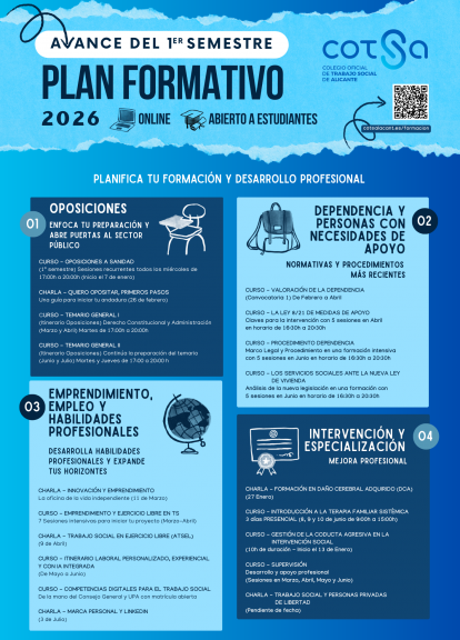 En el Colegio Oficial de Trabajo Social de Alicante (COTSA), diseñamos nuestra oferta formativa para ser útil, actualizada y totalmente enfocada en tus necesidades como profesional del Trabajo Social.